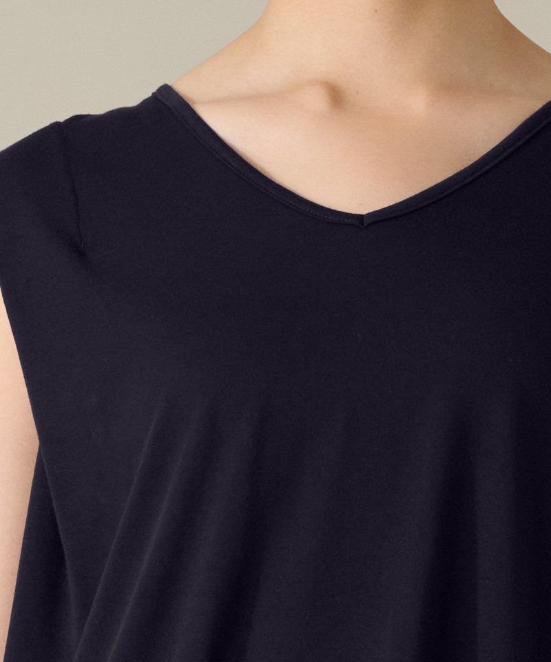 袖口に入ったタックが立体感を出し、二の腕やバストラインをカバーしてくれます。