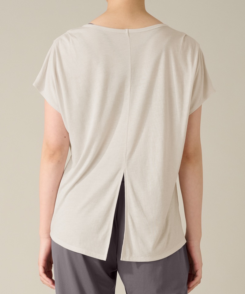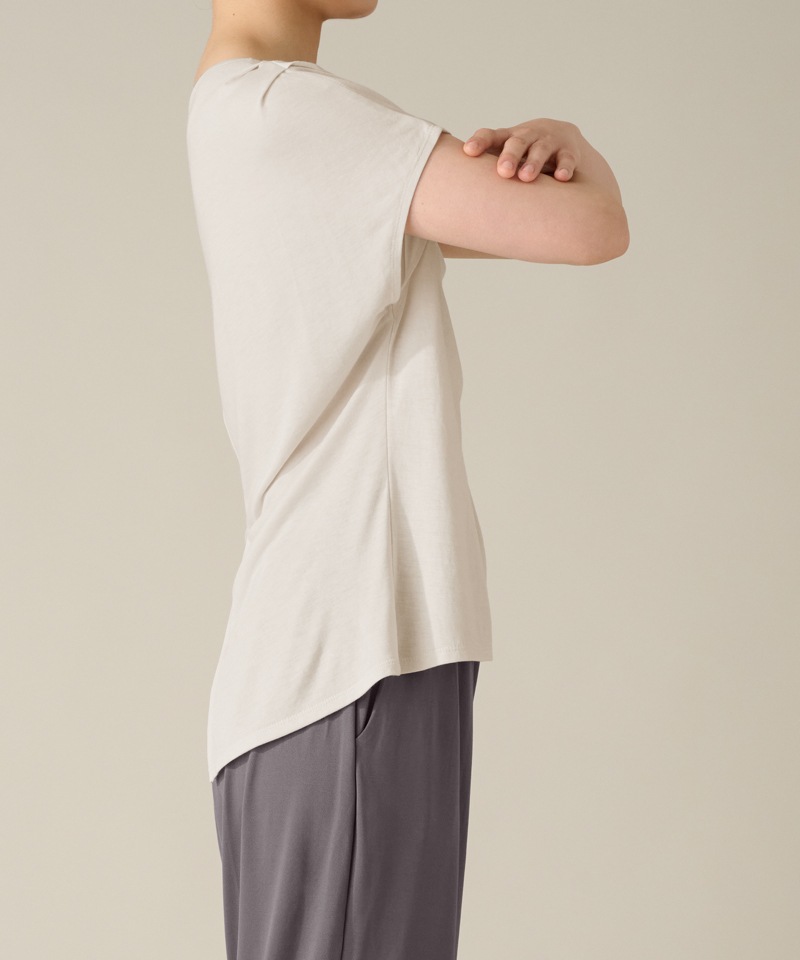 ■肩線前後にタックを入れ、ゆったりとした身幅に仕上げたフレンチスリーブトップ