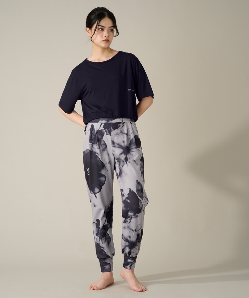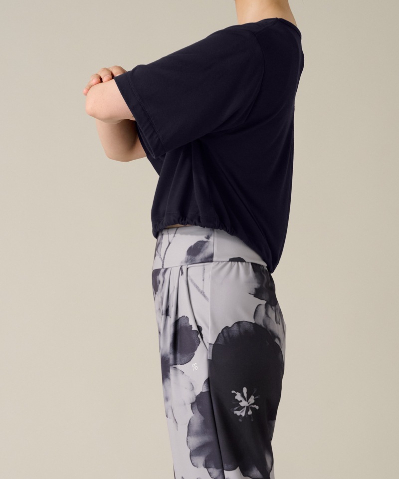 ゆったりとした幅広のハーフスリーブは少し長めの丈で、気になる二の腕をカバー。