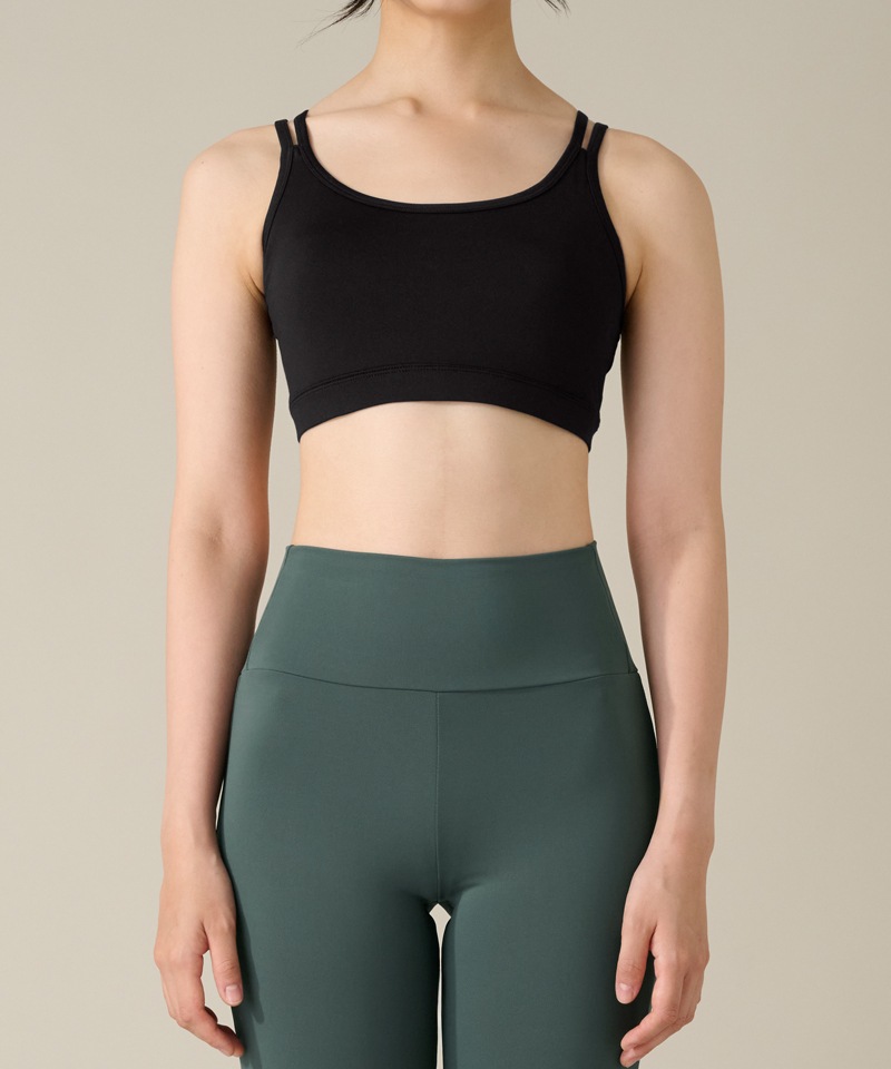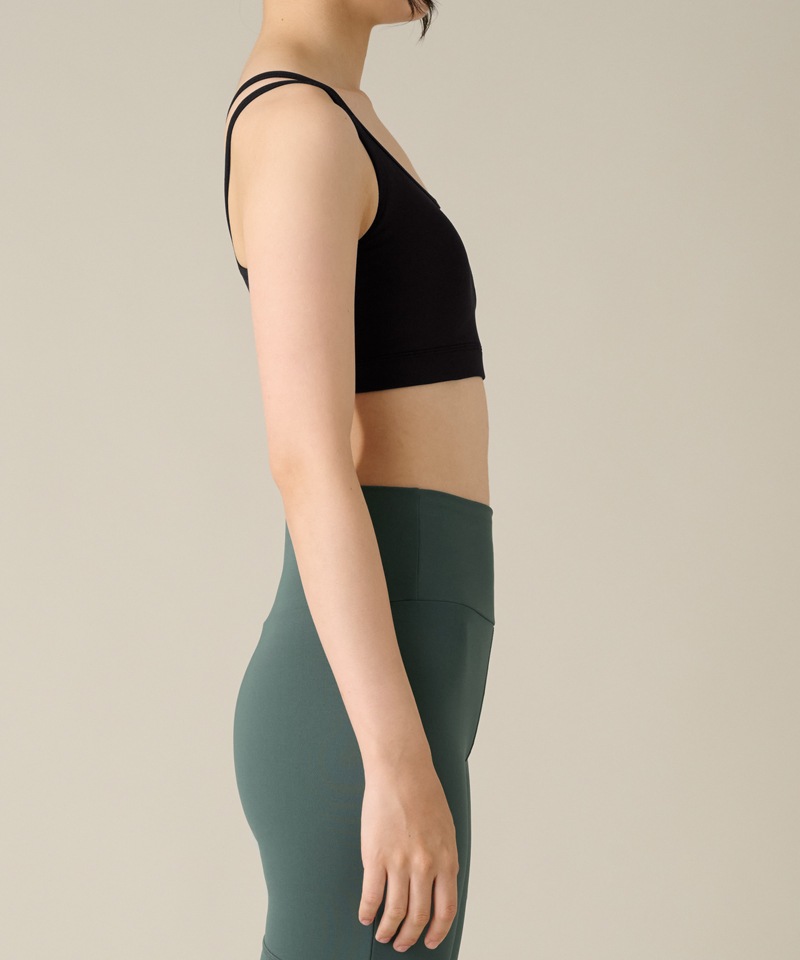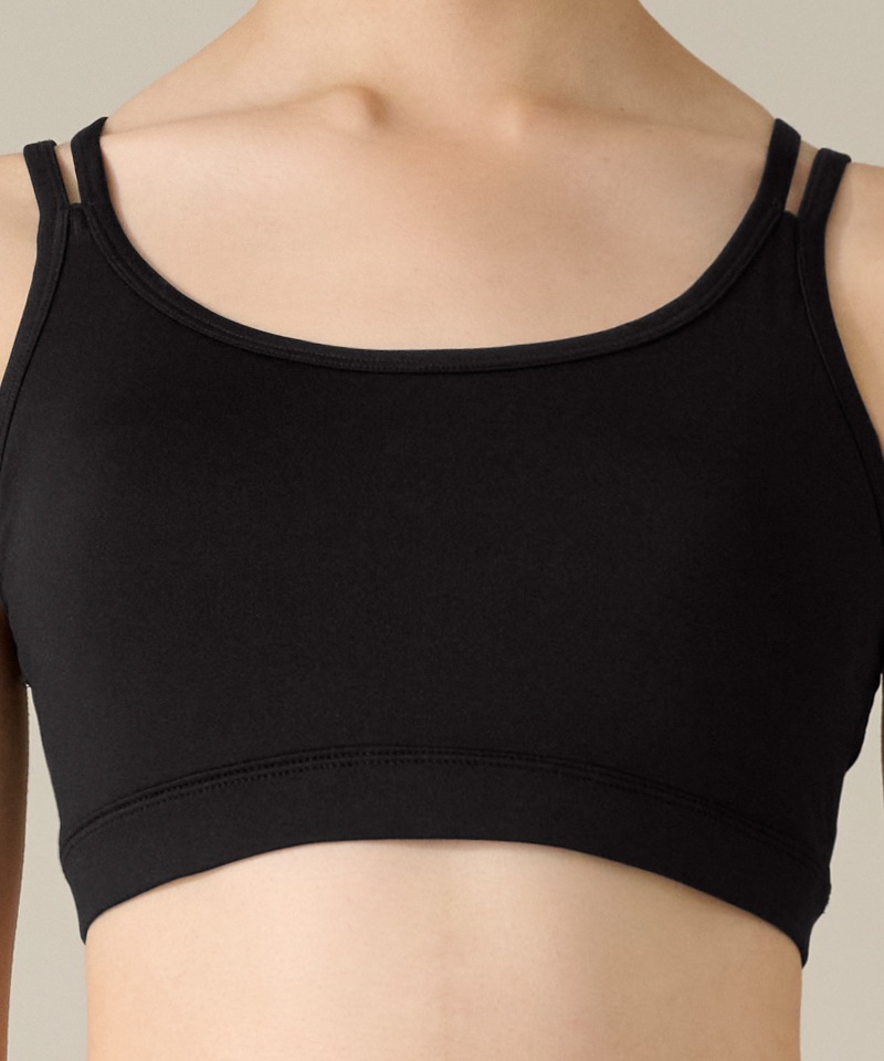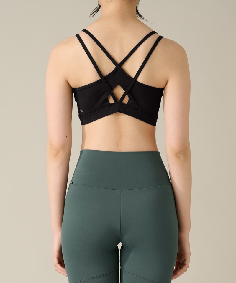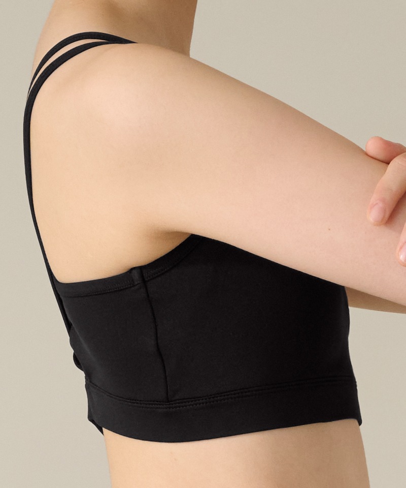 ダブルストラップは、華奢見えながら、サポート力の高いクロスバックデザイン。