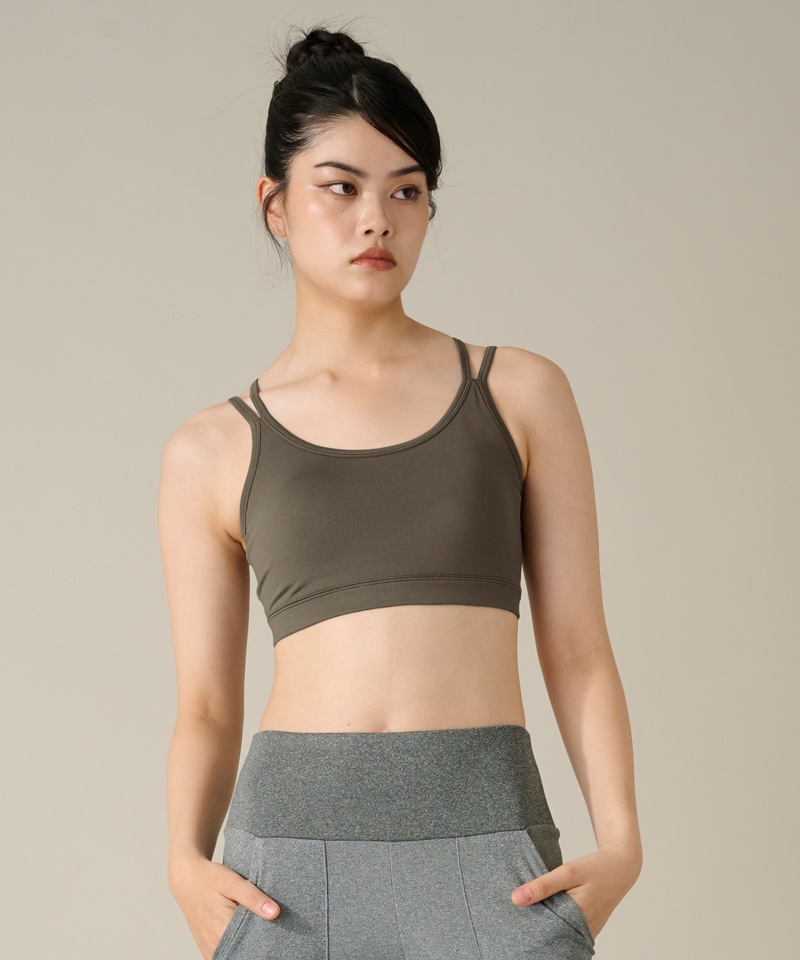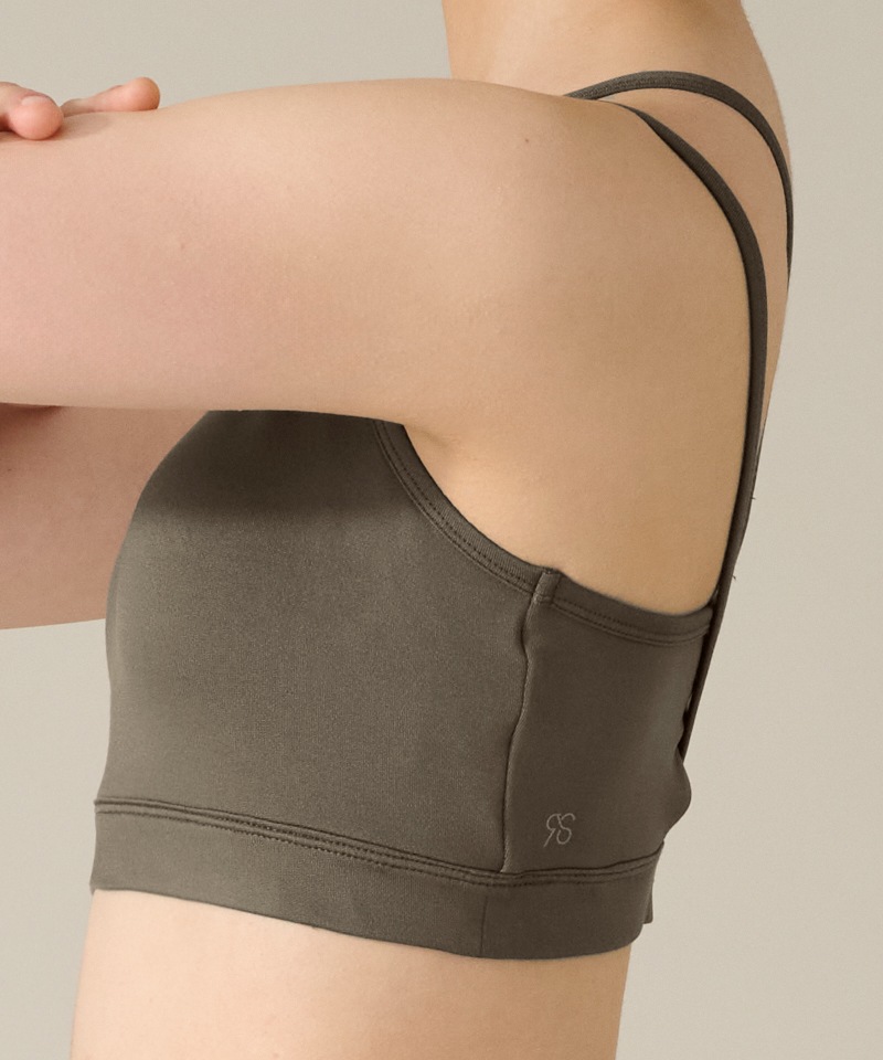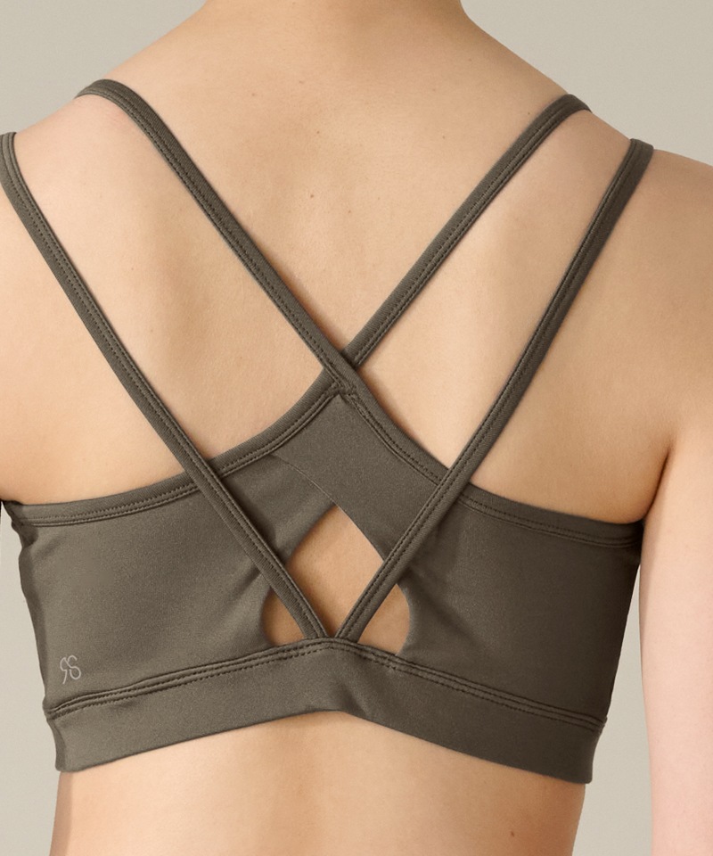 ダブルストラップは、華奢見えながら、サポート力の高いクロスバックデザイン。