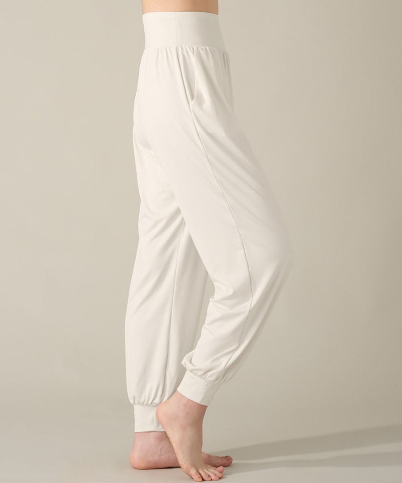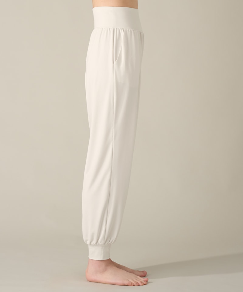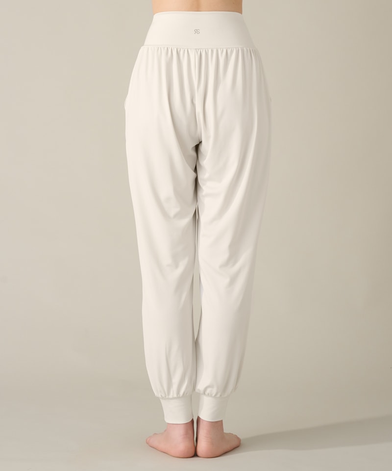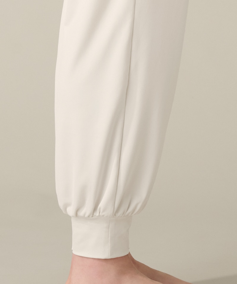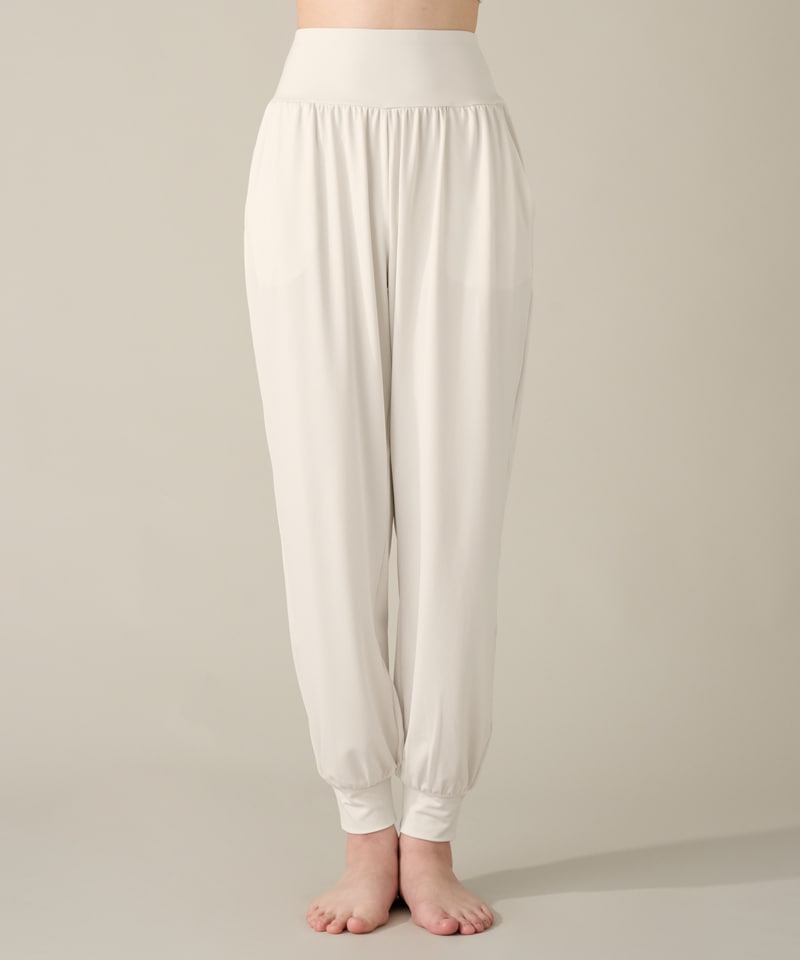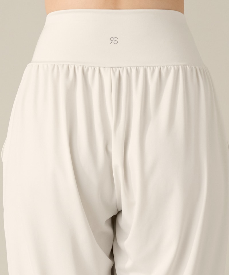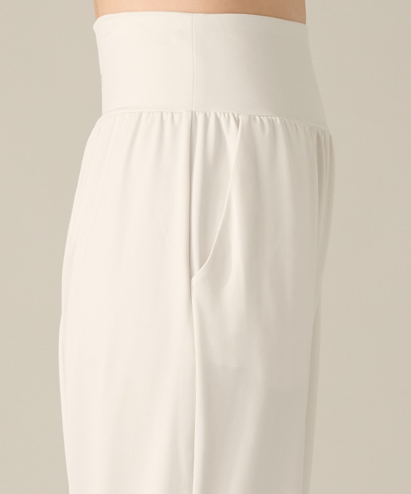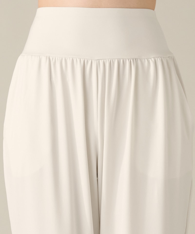たっぷりとギャザーが入ったゆとりあるシルエットで、体のラインを拾いにくく、リラクシーな着用感です。