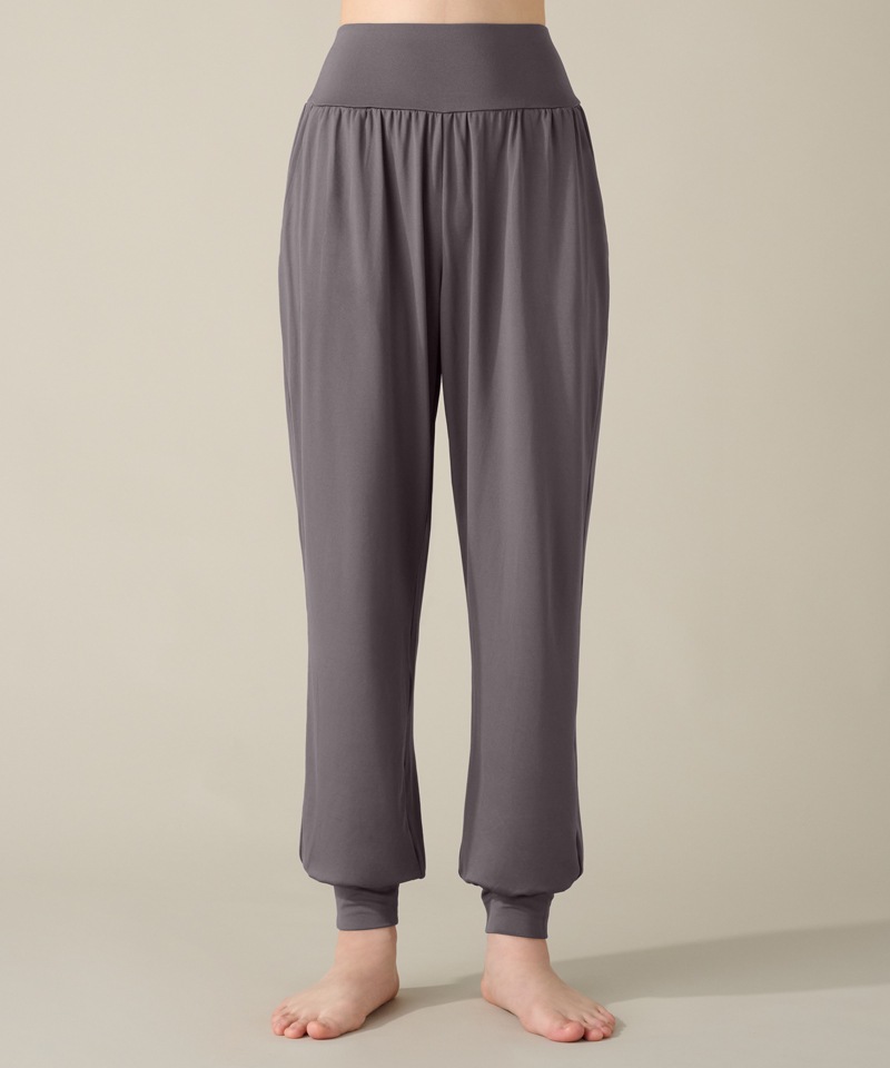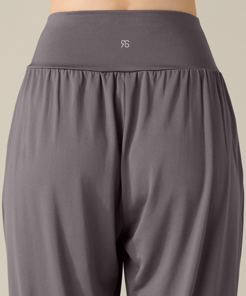 たっぷりとギャザーが入ったゆとりあるシルエットで、体のラインを拾いにくく、リラクシーな着用感です。