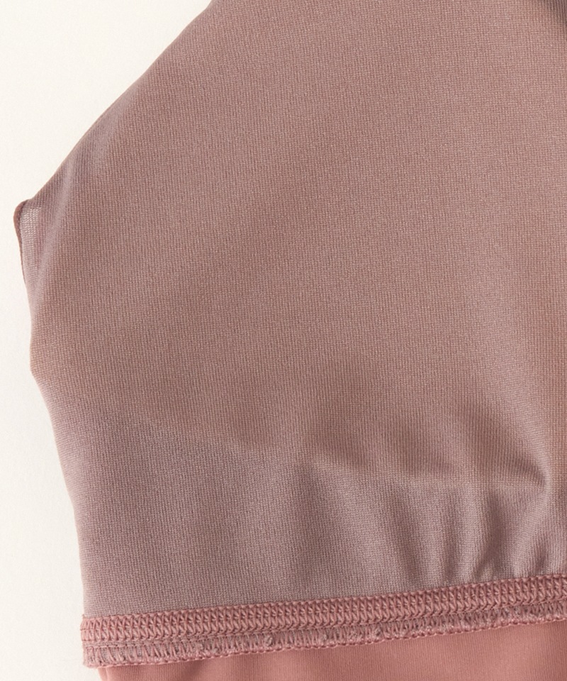 縫い目が表に出ない仕様は、肌あたりが優しく、練習の集中を妨げず、 アンダーバスト中心にギャザーを取りキレイなバストラインを作ります。