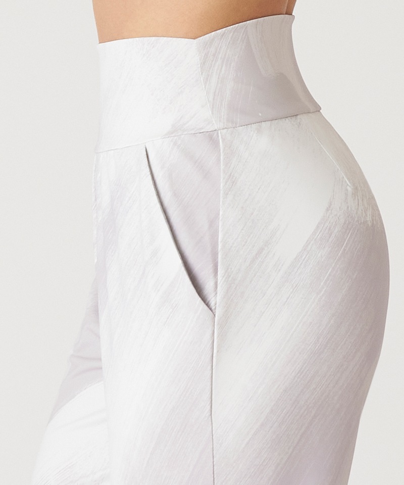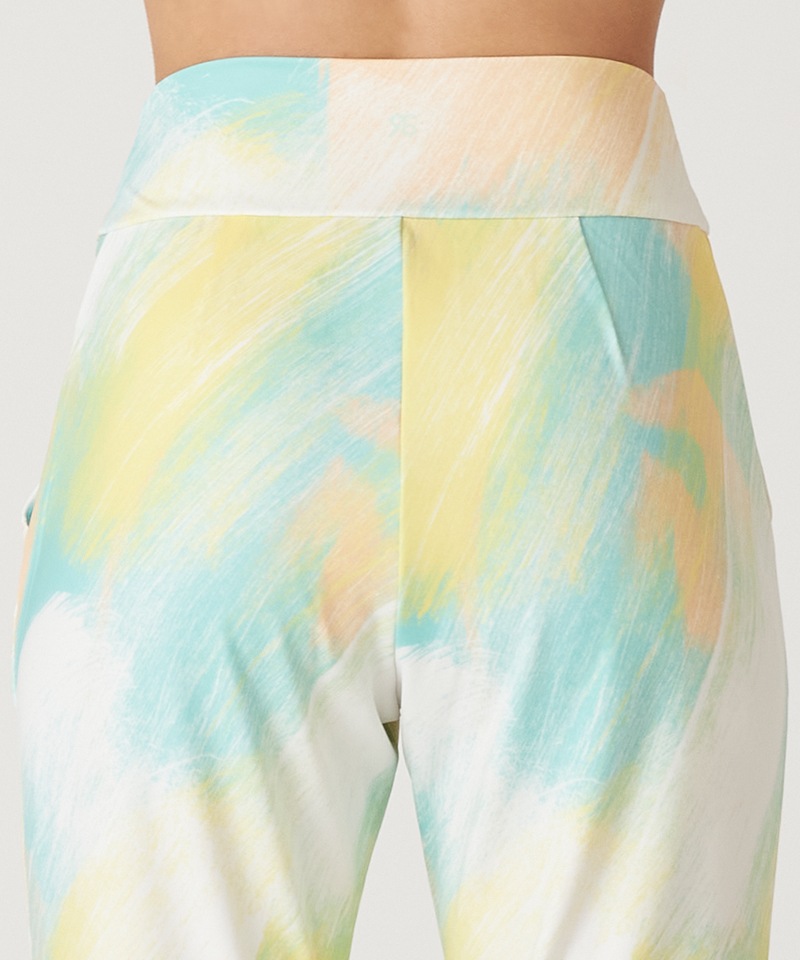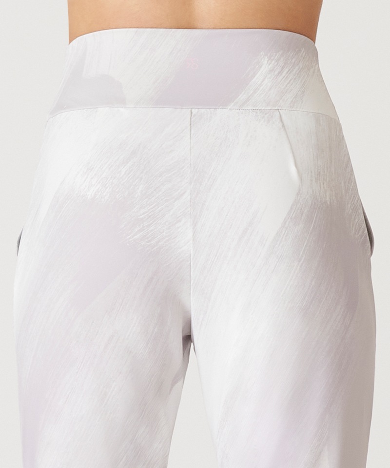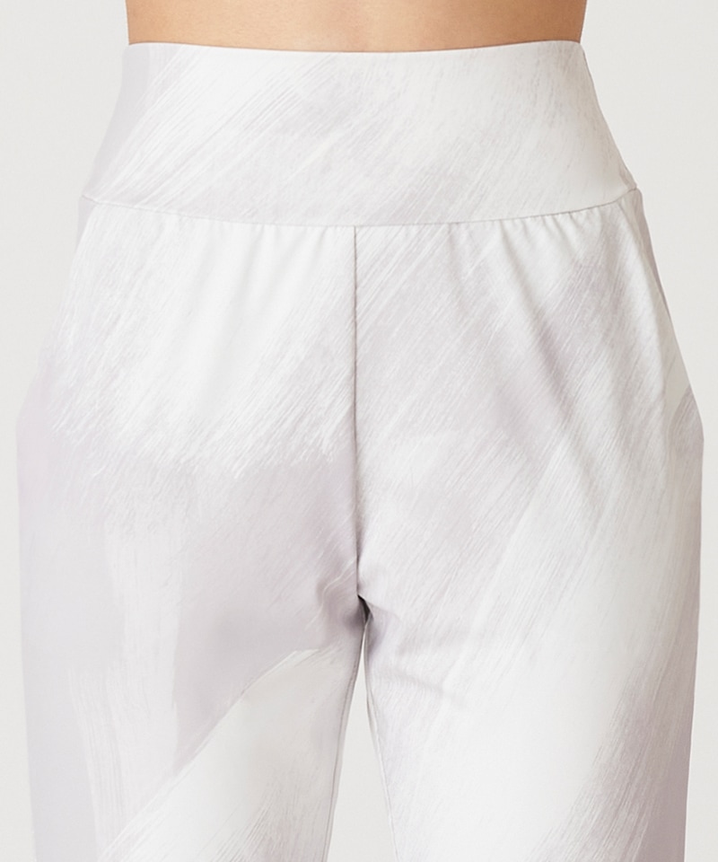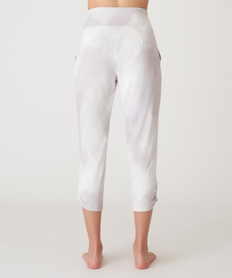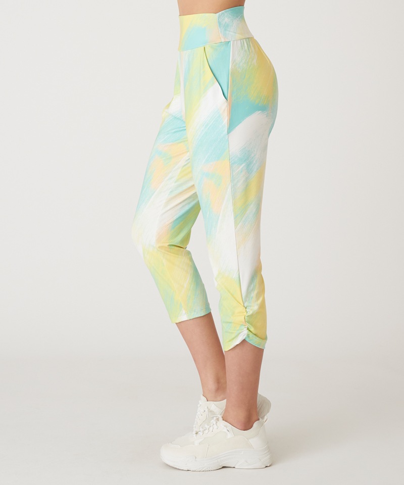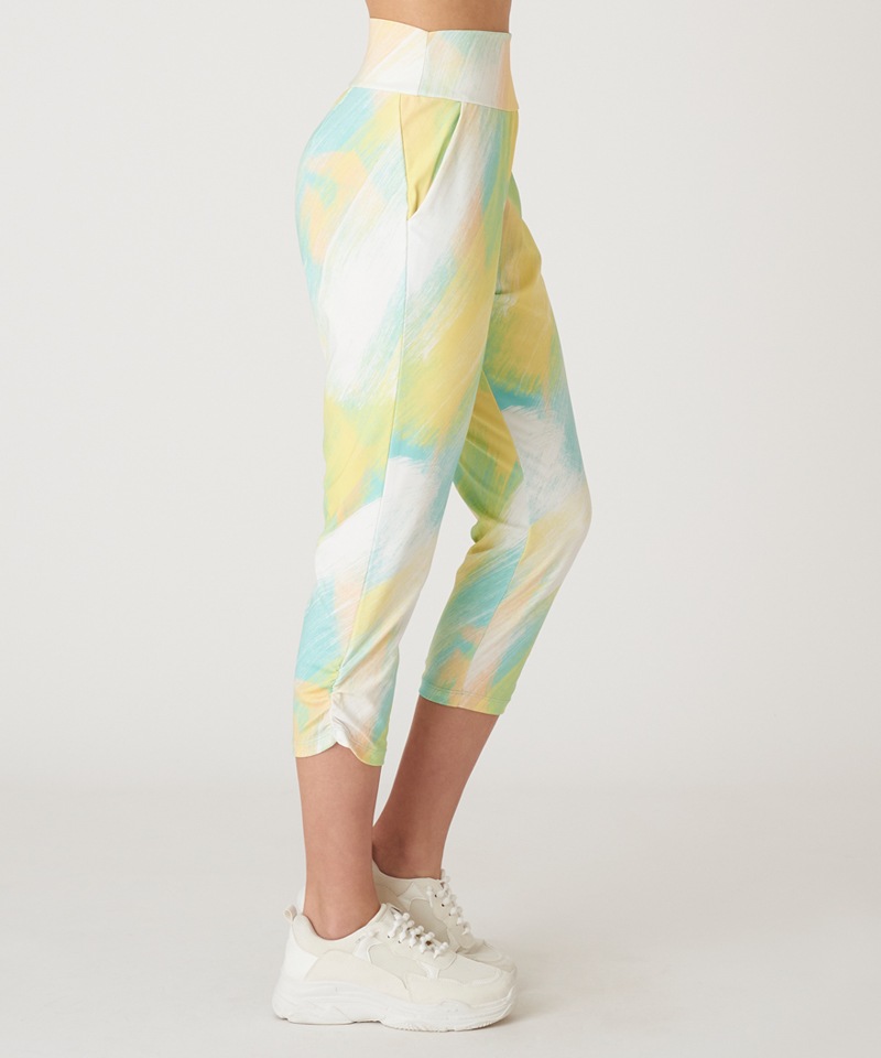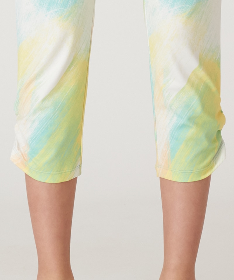 両サイド裾のギャザーがアクセントのカプリ丈パンツ。