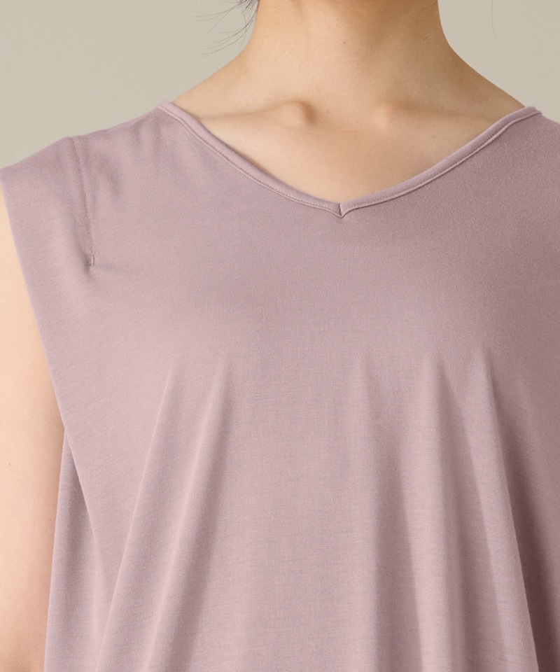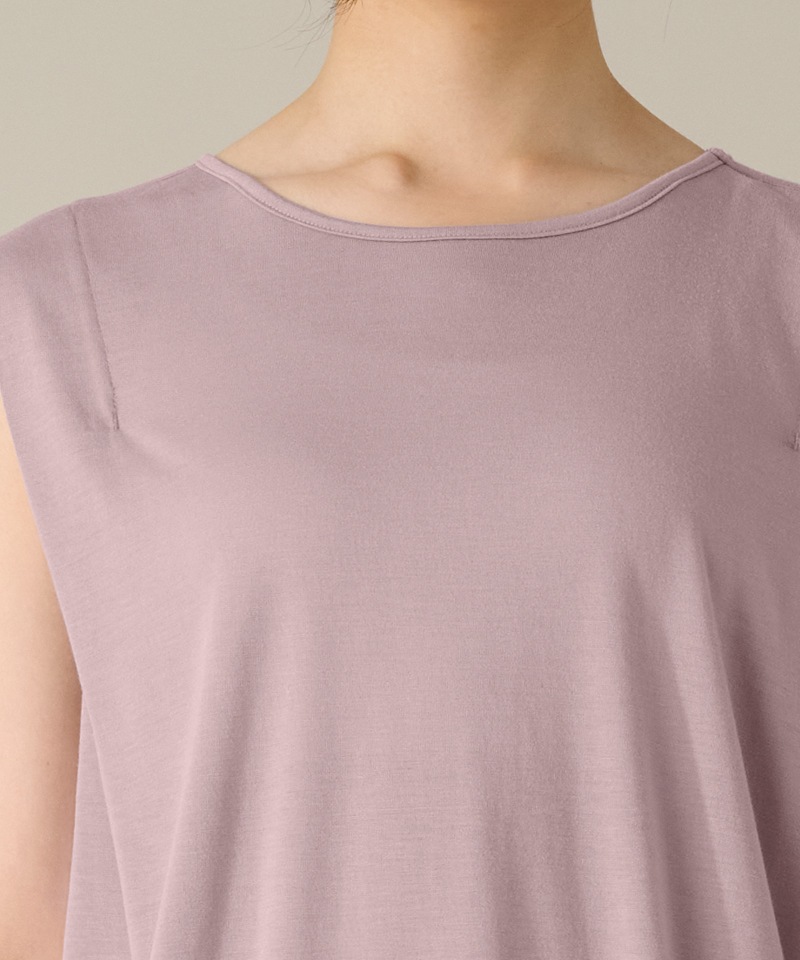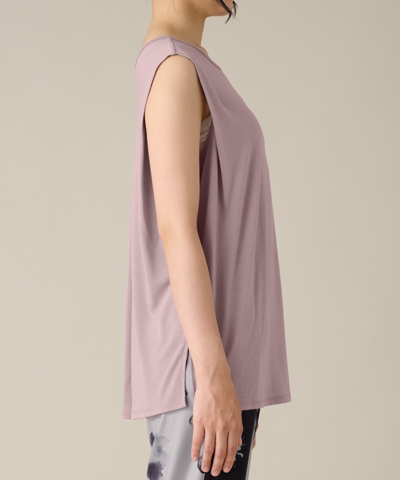 袖口に入ったタックが立体感を出し、二の腕やバストラインをカバーしてくれます。