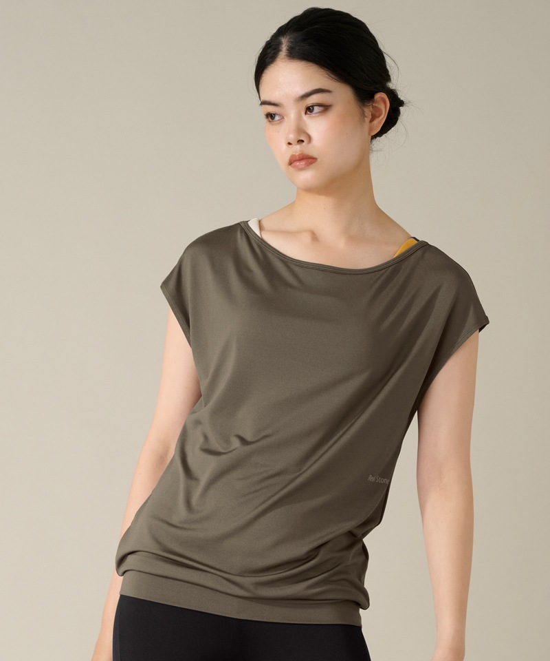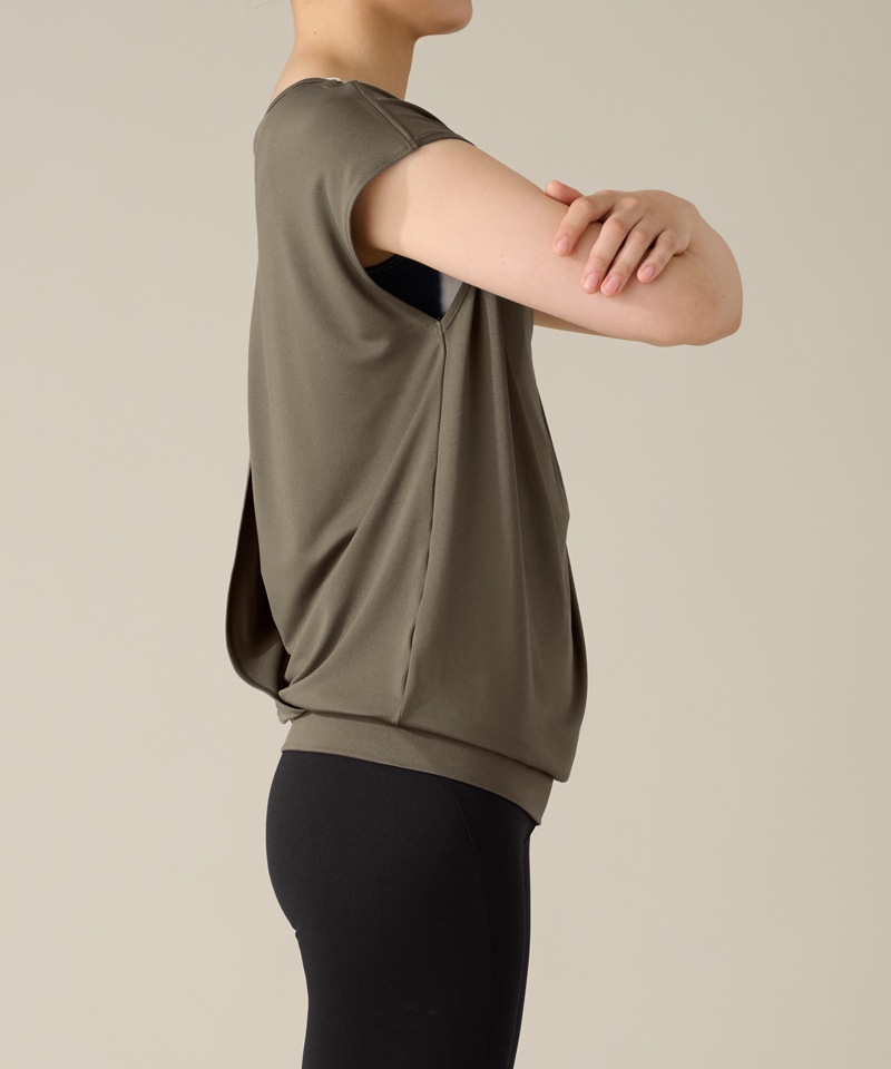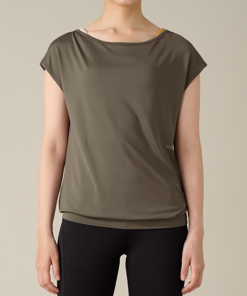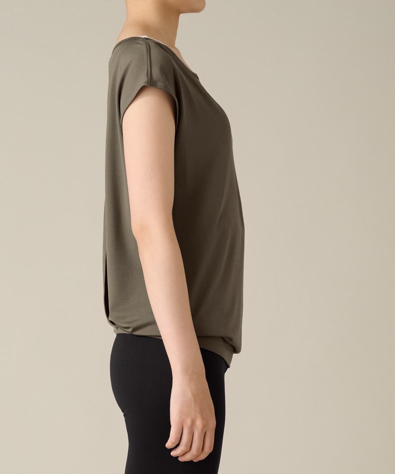【Sale】【COCOTEX(ココテックス)】フレンチスリーブトップ グレイッシュカーキ